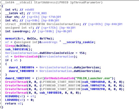 盗号核心是md5.dat(其实是个dll,会被POLCN_Launcher.exe加载)