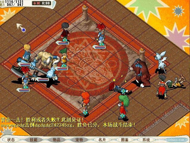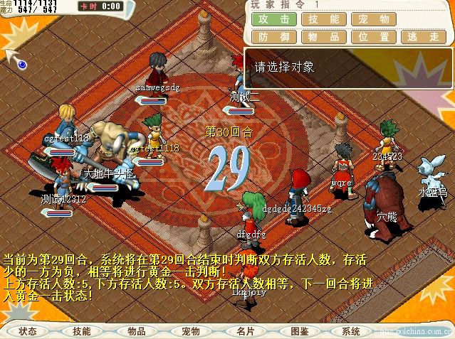 3. 本着保持速战速决的原则。比赛超过29回合时,系统将以第29回合结束时场上剩余站立角色的数量多寡来判定胜负,若双方站立角色数相等,则进入“黄金一击”模式:任何一方如有角色率先被击倒,则判定该队失败;