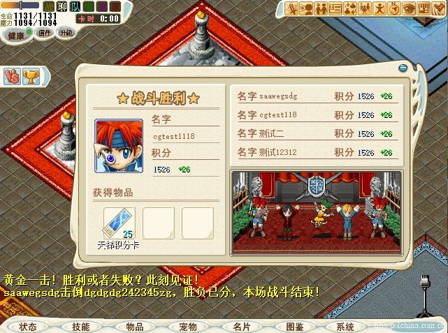 6. 战斗结束后,不论胜负,都将会获得“天梯积分卡”道具奖励,数量与战斗的结果、战斗过程有关。