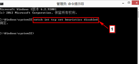 首先输入:"netsh int tcp set heuristics disabled"点击回车;