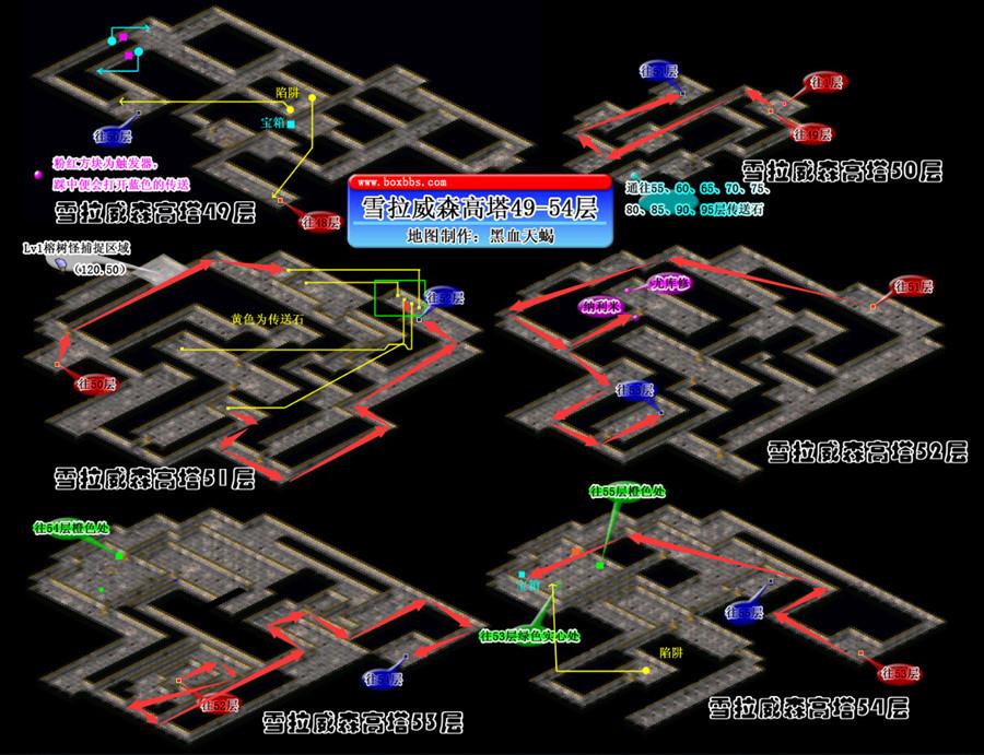 ◆通过(111.63)处蓝色传送石,可传送至雪拉威森塔52层(76.62)处
