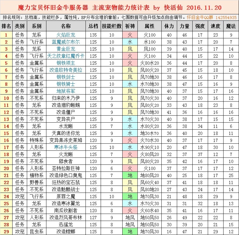 时常有新人会问,什么宠物最好?什么宠物适合打任务?什么魔宠最流行?这些问题是仁者见仁智者见智的,一两句话也说不清楚。但就怀旧金牛服当前的设定来说,宠物能力是可以明确分出高下,弄一个排行榜出来的。