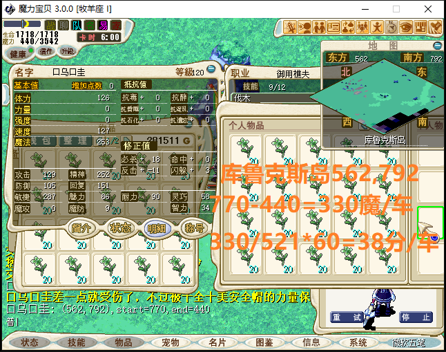 库鲁克斯岛562,792,770魔开挖,440结束 ,770-440=330魔/车,折合38.0分/车